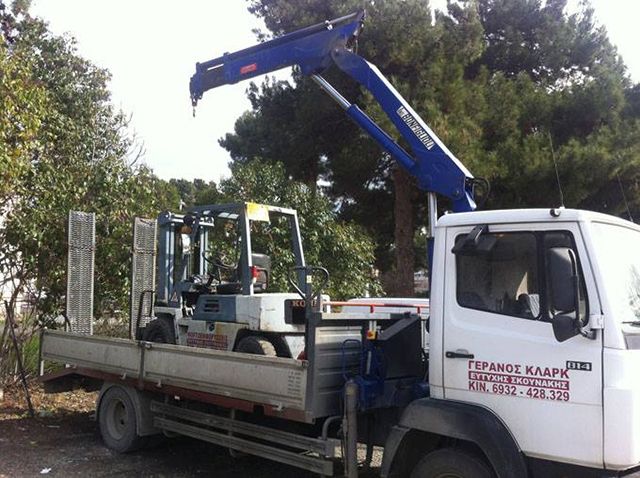 Ενοικιάζουμε κλαρκ (περονοφόρα, παλετοφόρα, με λαβίδα κ.τ.λ.) και γερανό, με ή χωρίς χειριστή, για όσο χρειαστεί. Εξυπηρετούμε άμεσα, υπεύθυνα και με ασφάλεια επαγγελματίες, εταιρείες και ιδιώτες όλο το 24ωρο, 365 μέρες το χρόνο, καλύπτοντας όλο το νομό Θεσσαλονίκης, αλλά και όλη την περιοχή της Κεντρική Μακεδονίας. Στόχος μας είναι η βέλτιστη εξυπηρέτησή σας και δίνουμε ιδιαίτερο βάρος στην ασφάλεια, πάντα με τιμές προσαρμοσμένες στις ΟΙΚΟΝΟΜΙΚΕΣ ΑΝΑΓΚΕΣ ΤΗΣ ΕΠΟΧΗΣ.